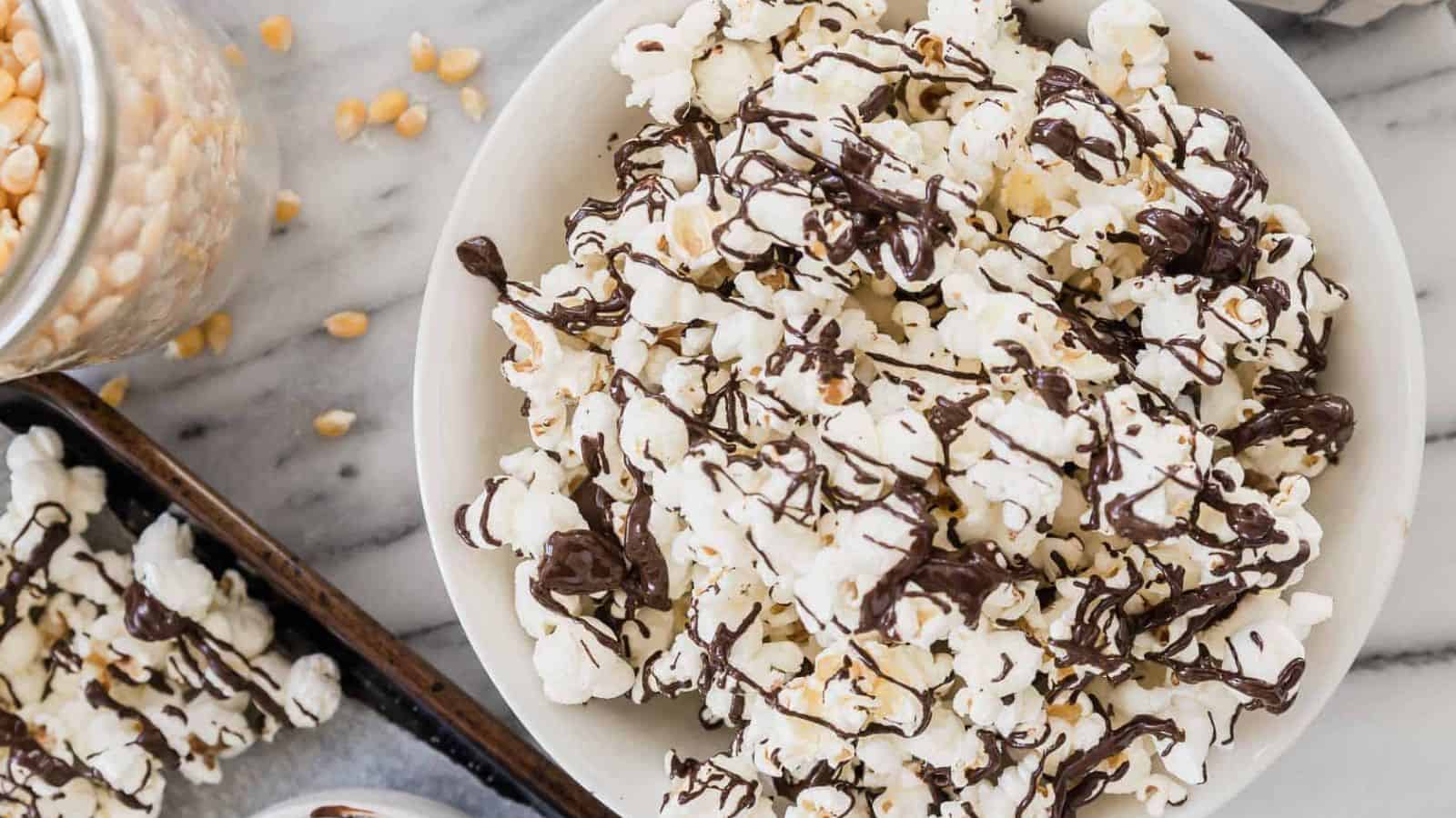Sweet and salty chocolate-covered popcorn is a must-have snack that disappears at every holiday office party.