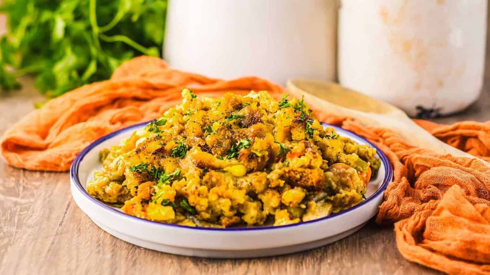 Turkey pot pie layers turkey, vegetables, gravy, and stuffing into a comforting dish. Using a crockpot lets the components cook together gently.