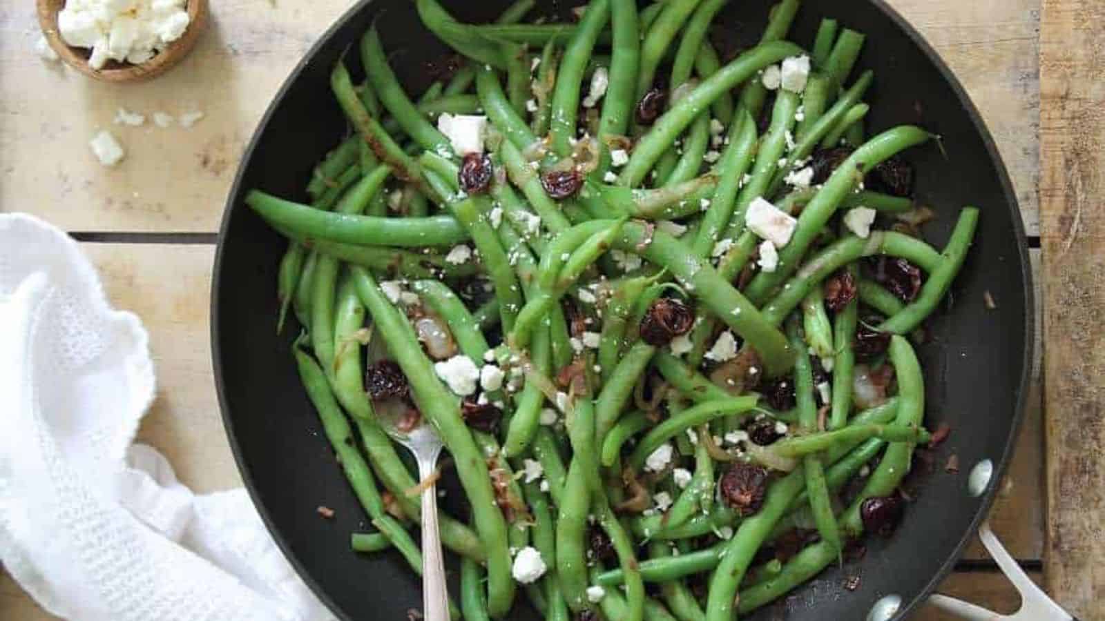 Green bean cherry salad layers caramelized onions, crispy ham, and feta for a bold mix of flavors. The green beans add freshness and crunch, making it perfect for any table.