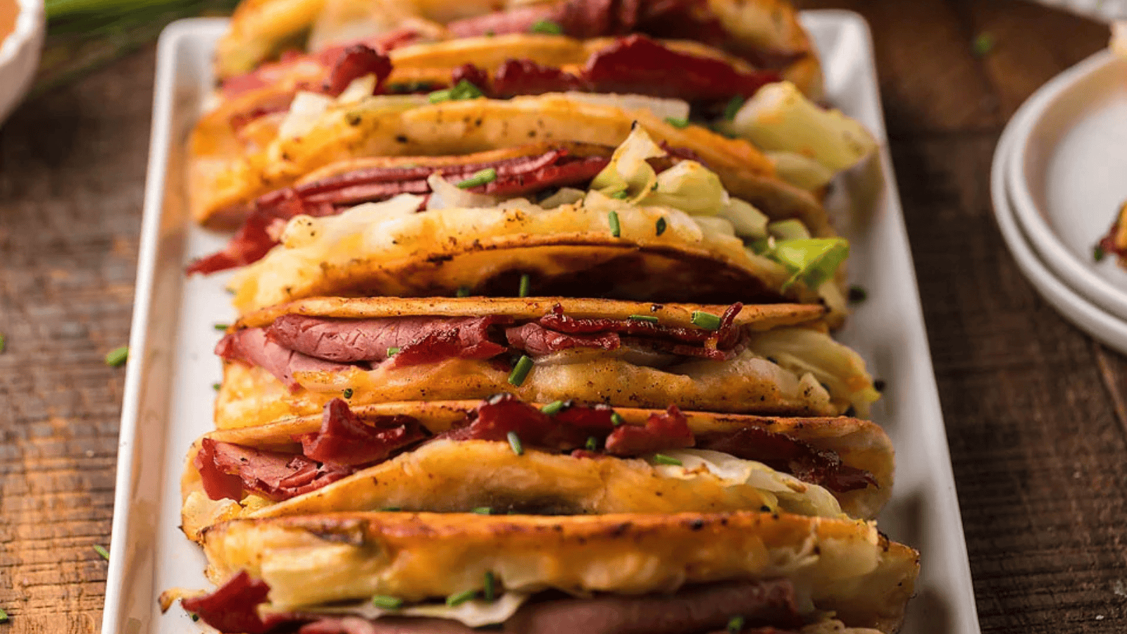 Corned beef, potatoes, and cabbage come together in these Irish-style tacos. Each bite is a handheld discovery of bold, comforting flavors.