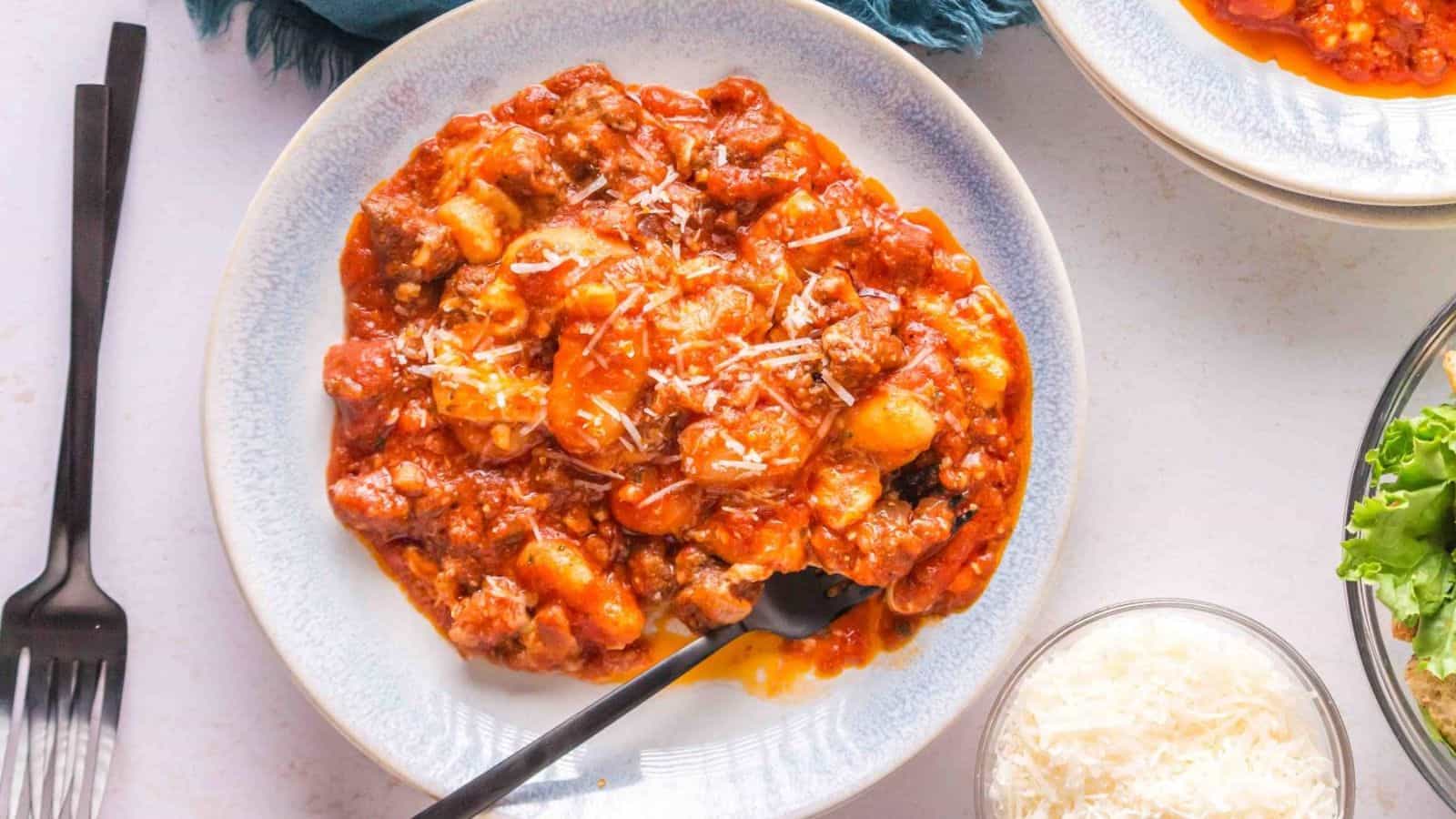 Gnocchi baked with Bolognese sauce is an ovenproof skillet casserole. It’s a straightforward casserole because it cooks in one dish and can feed multiple people.